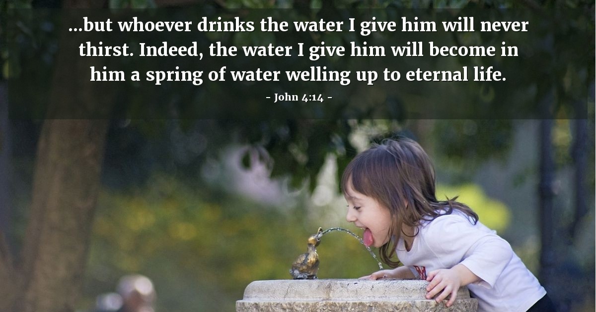 Jesus offers water we don’t have to carry, find, purify, or resupply. Jesus’ water wells up within us. The Holy Spirit brings us Jesus’ water because we are his disciples who believe in him (John 7:37-39). Jesus’ water gives us eternal life, which begins now, lasts throughout each day we live, and continues forever (John 4:14, 5:24). This water of eternal life is a gift from Jesus, our Lord!